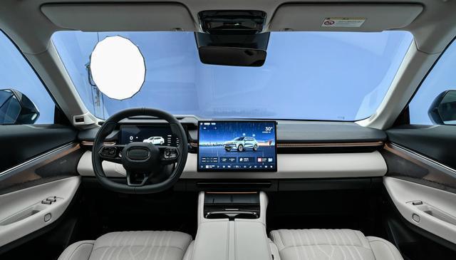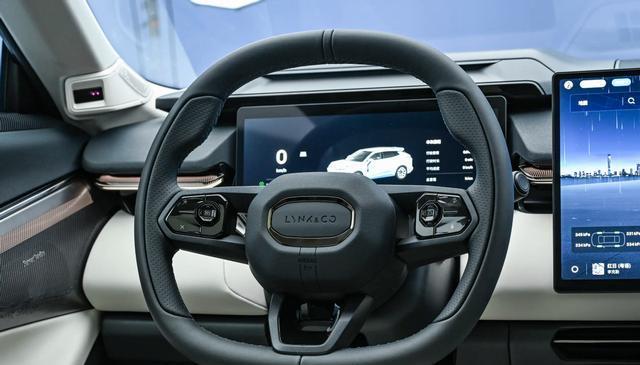 进入到驾驶舱,领克08 EM-P并不是现在比较常见的环绕式,而是在保持简洁布局的同时,通过中控、门板等区域的上下层撞色与结构性分层,让座舱看上去较为立体一些。同时,三辐式方向盘的D型设计依旧是偏向于个性运动的一面,按键式车门锁、隐藏式氛围灯,还有全系标准化的23扬声器立体环绕声音响,这些设计与配置放在当下不说是多出彩的加分项,但也能把领克08 EM-P的标配档次维持在一个比较高的水平线上。